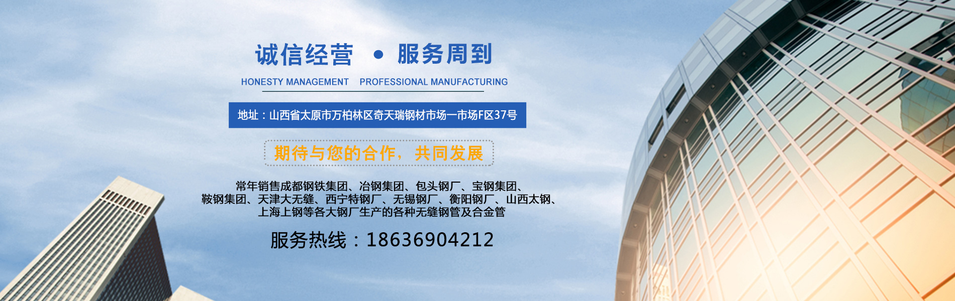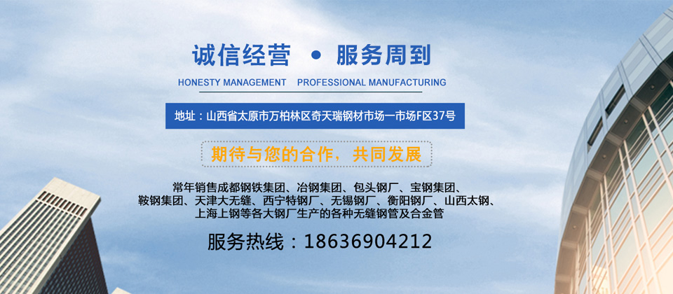 山西衡泰尚盈貿易有限責任公司是集生產(chǎn)加工經(jīng)營(yíng)于一體的無(wú)縫鋼管、不銹鋼管、合金管、鍋爐管、液壓支柱管、方管、方矩管、不銹鋼板等的大型企業(yè),常年銷(xiāo)售成都鋼鐵集團、冶鋼集團、包頭鋼廠(chǎng)、寶鋼集團、鞍鋼集團、天津大無(wú)縫、西寧特鋼廠(chǎng)、無(wú)錫鋼廠(chǎng)、衡陽(yáng)鋼廠(chǎng)、山西太鋼、上海上鋼等各大鋼廠(chǎng)生產(chǎn)的各種無(wú)縫鋼管及合金管。